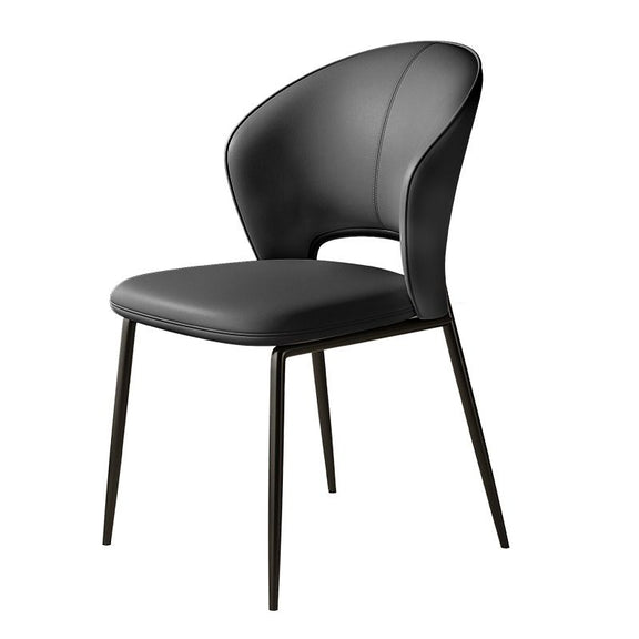 A sleek chair featuring a beige curved backrest and seat, complemented by slender black metal legs