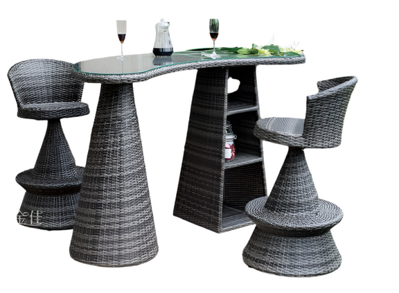"Outdoor Wicker Bar Set - Patio Rattan High Table & Swivel Bar Stools"