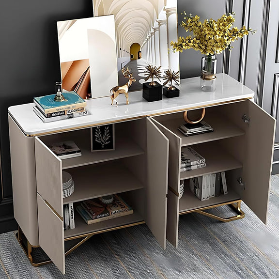 Modern Luxury Side Cabinet/Side Board/Storage Cabinet – Elegant Fluted Design with Gold Accents for Stylish Home Décor