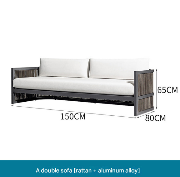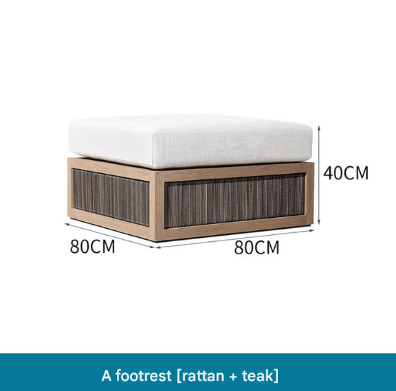 Nordic Outdoor Teak Rattan Sofa Set – Villa Courtyard Lounge with Coffee Table
