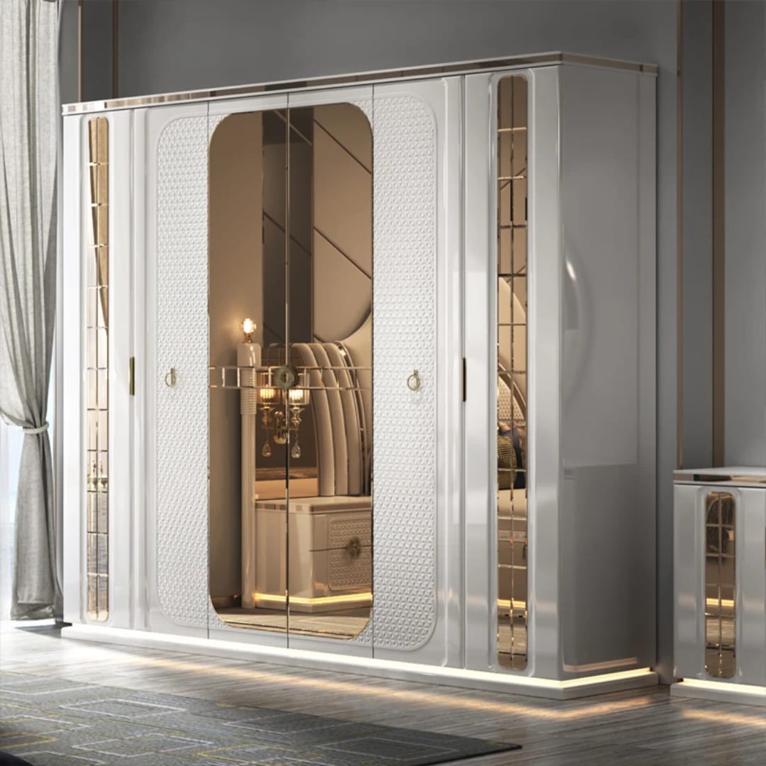 Feature Details Appearance Modern Luxury Brand Name SSS Home Needs Model Name 8862 Customizable or not Yes – Size, Color, Material Details of Installation Simple assembly required; installation service available Main Material Wooden MDF, Fabric, Metal, Glass, Leather Bed Type King/Full size bed with fan-shaped upholstered leather headboard Additional Features Storage, Glass mirrors, LED lights Dresser Dressing table with mirror & drawers Bedside Units 2 nightstands included Style Positioning Modern, Minimalist, Luxury Function Bedroom set (bed + dresser + nightstands) Origin Guangdong, China