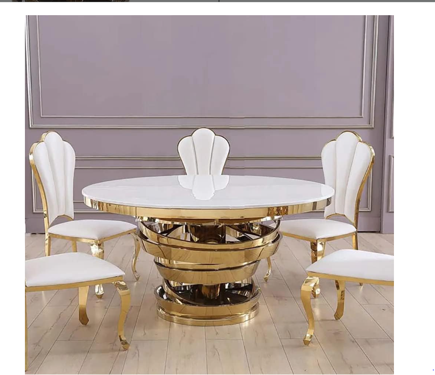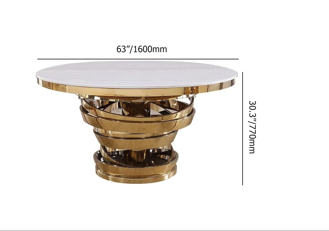 Light Luxury Round Marble Dining Table – Stainless Steel Base, 4–8 Seater