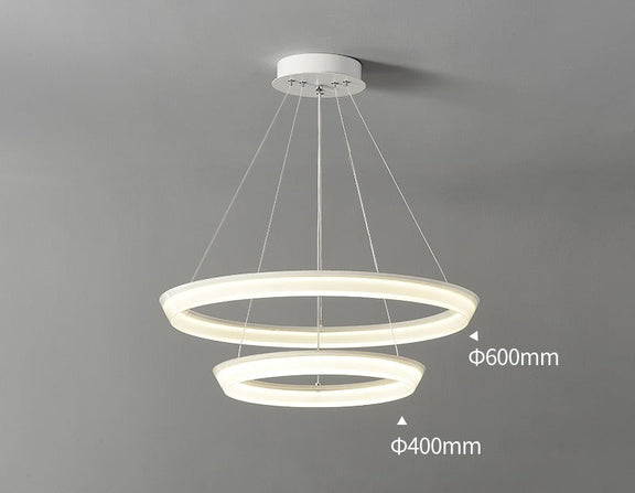 Sleek halo-ring LED chandelier for dining and living spaces. Multiple ring combinations and light temperatures available.
