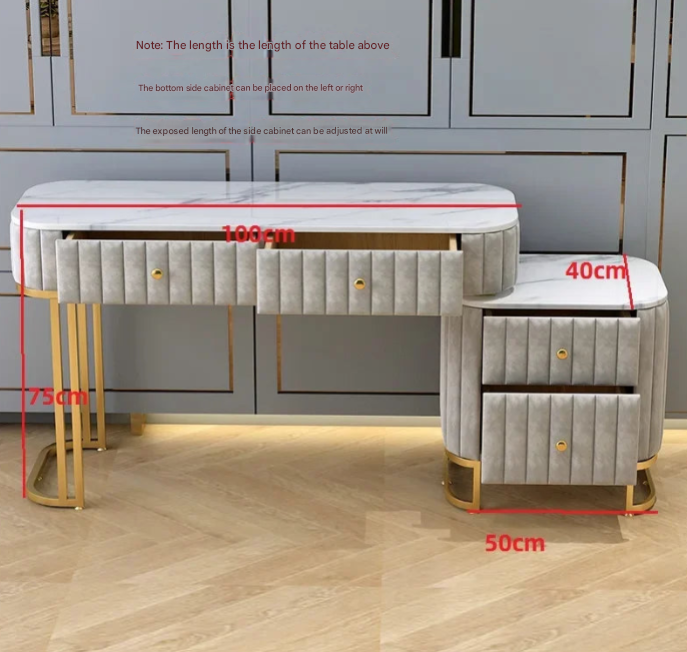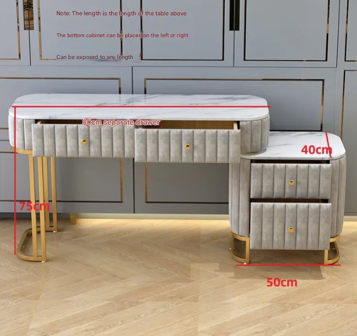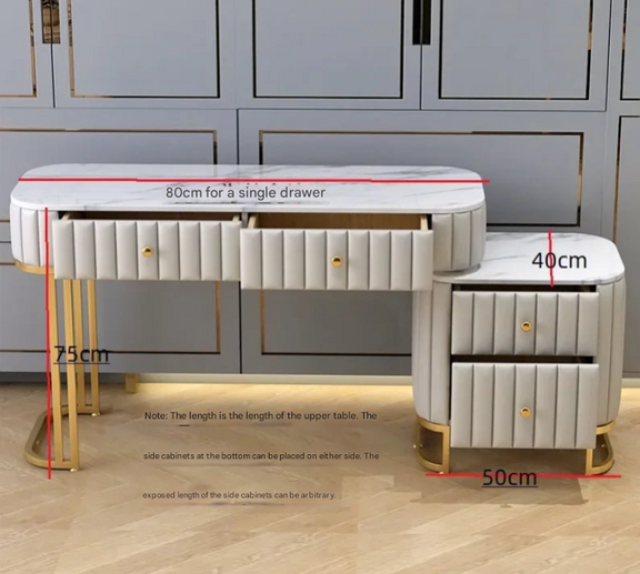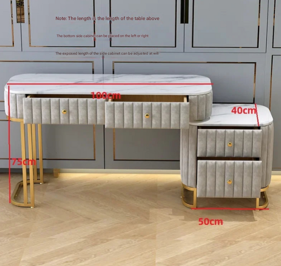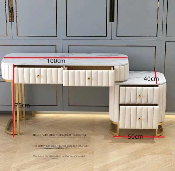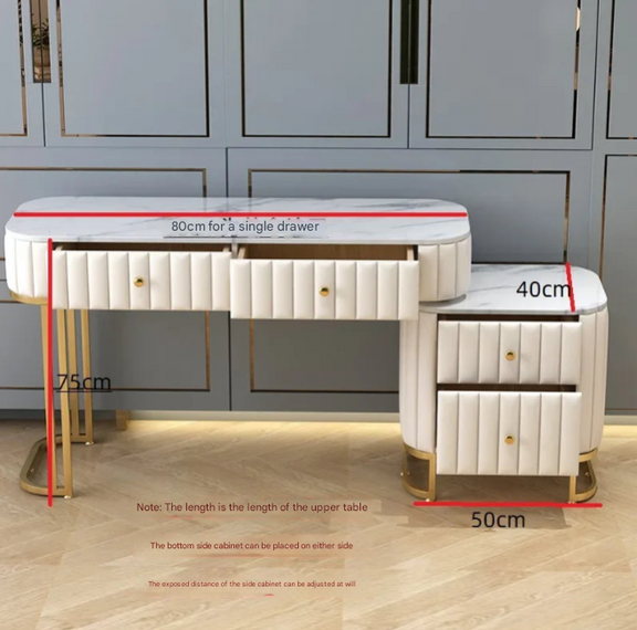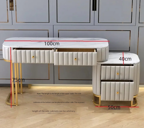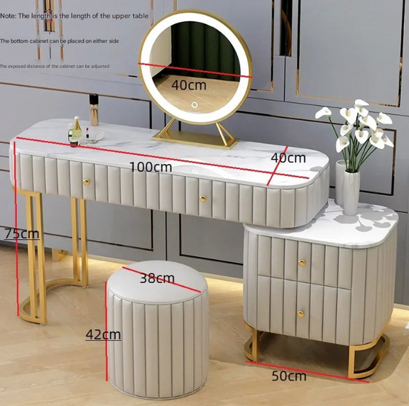 | Function | Vanity Dressing Table with Marble Top, LED Mirror, and Upholstered Stool |