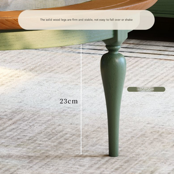 French Retro Round Coffee Table Set – Solid Ash Wood Antique Style for Living Room