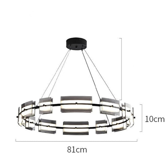 Modern ribbed-glass chandelier with round and linear options. Black frame, adjustable height, warm/neutral/white LED. Ideal for dining and living rooms.
