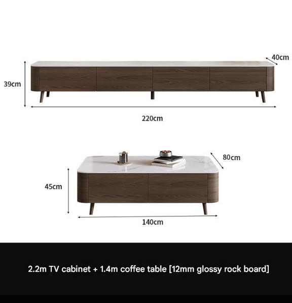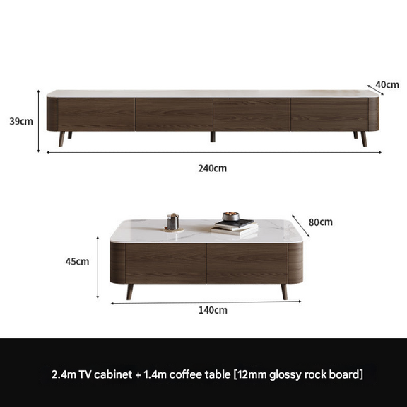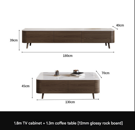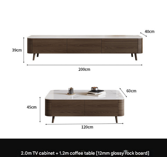 Nordic Walnut TV Cabinet & Coffee Table Set – Modern Rock Plate Living Room Furniture