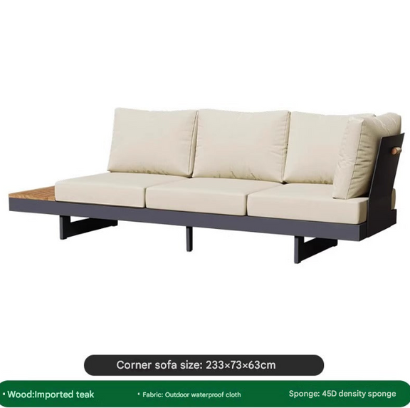 Modern Outdoor Teak & Aluminum Sofa Set – Waterproof Courtyard Lounge with Coffee Table